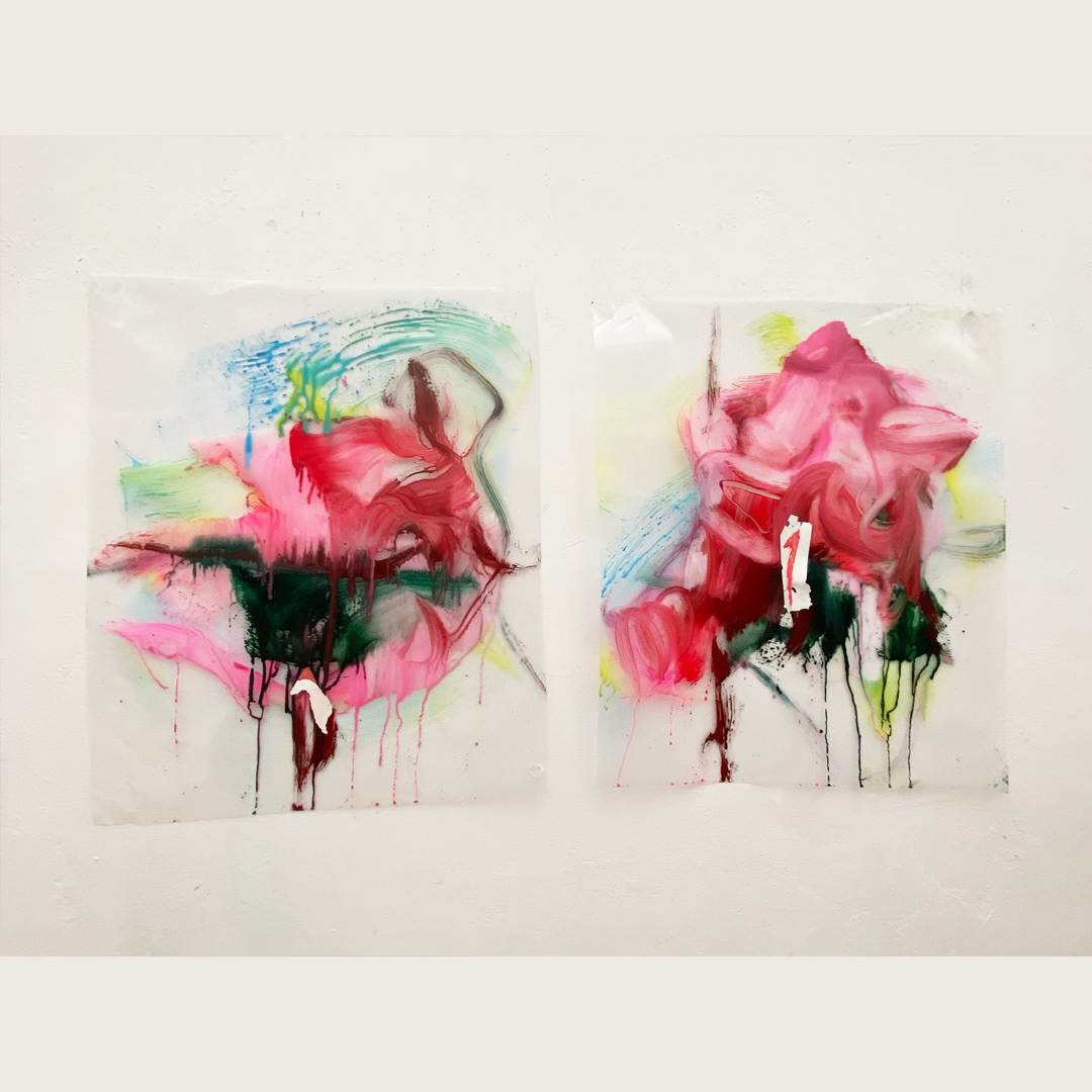 The works exhibited in Cambridge are created in response to a film experience. They refer to the British cult film Performance (1968). In the fall of 2022, the film was shown at a festival in Hamburg, and the program included various feminist films. Many of the guests were feminists. We were confronted with formerly-familiar, very violent cis-male read patterns, male fantasies, but then followed by queer and beautiful, sensual scenes. Many of us were unsettled. Incendiary images, beat images - sensations.